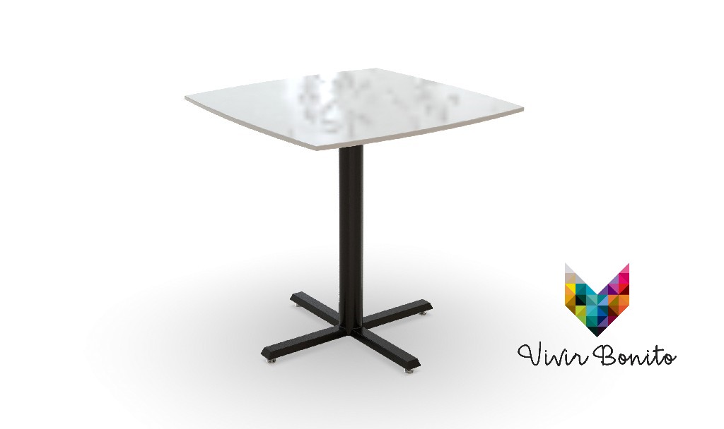 Mesa para comedor industrial, fabricada en estructura de fierro en cruz con cubierta en superficie solida de 12mm en este material contamos con mas de 20 colores a elegir .